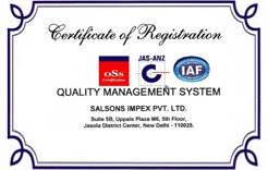 SALSONS has currently achieved the ISO 9001:2015 Certification, the latest ISO standard designation.